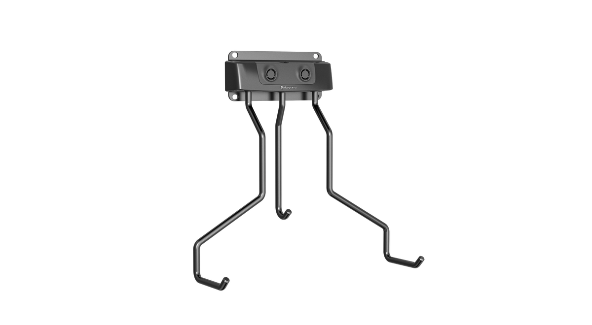 Denna praktiska Automower®-vägghängare är en kompakt lösning som gör det enkelt att förvara din robotgräsklippare under lågsäsong. Den kräver lite utrymme då den kan monteras direkt på väggen men är även kompatibel med Husqvarna förvaringsskena.